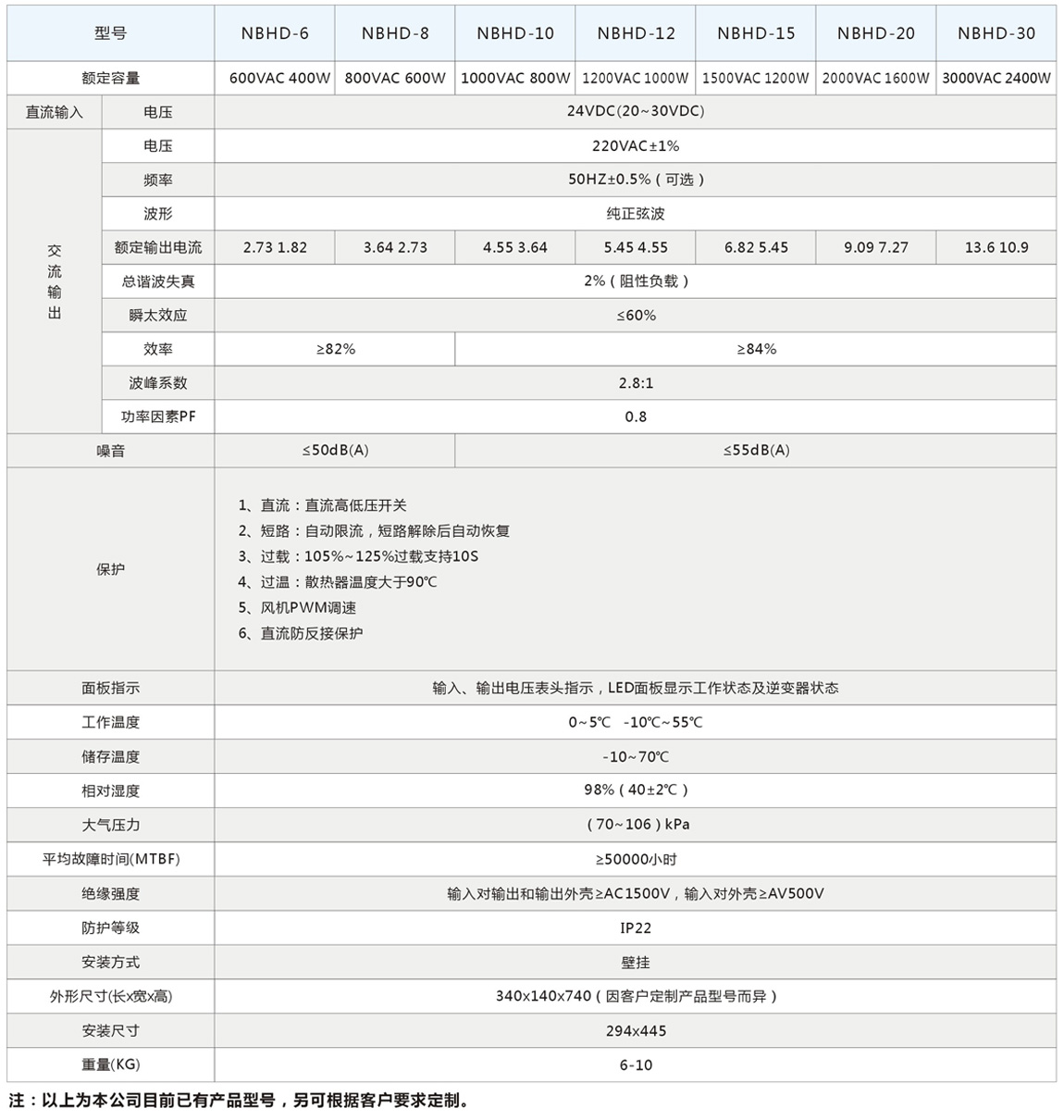 NBHD inverter and NBHD-6, NBHD-8, NBHD-10, NBHD-12. NBHD-15. NBHD-20, NBHD-30 seven specifications. The inverter adopts high frequency power conversion technology,